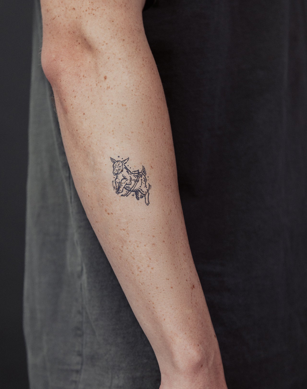Leap into the unknown with Aether Hooves, a 2x2 inch EZINK temporary tattoo by @in.grave.tattoos. Featuring a goat mid-jump, this design channels untamed energy and defiance, breaking free from the ordinary. Lasting 1-2 weeks, it’s for those who dare to jump higher and push past their limits.