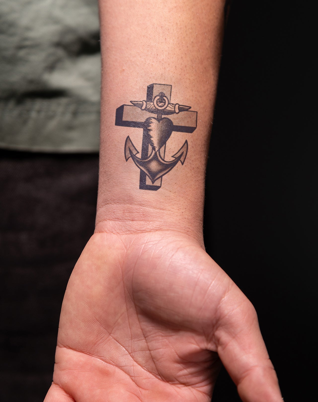 Anchored Heart is a 2x3 inch design by @aaronfhc that blends symbols of strength, love, and faith into a single, striking emblem. A bold anchor pierces a shaded heart, rooted against the backdrop of a solid, three-dimensional cross. This fusion of nautical grit and devotional imagery speaks to enduring loyalty and spiritual grounding. Delivered as a 1–2 week EZINK temporary tattoo, Anchored Heart is for those who carry devotion deep and hold fast in life’s storms.