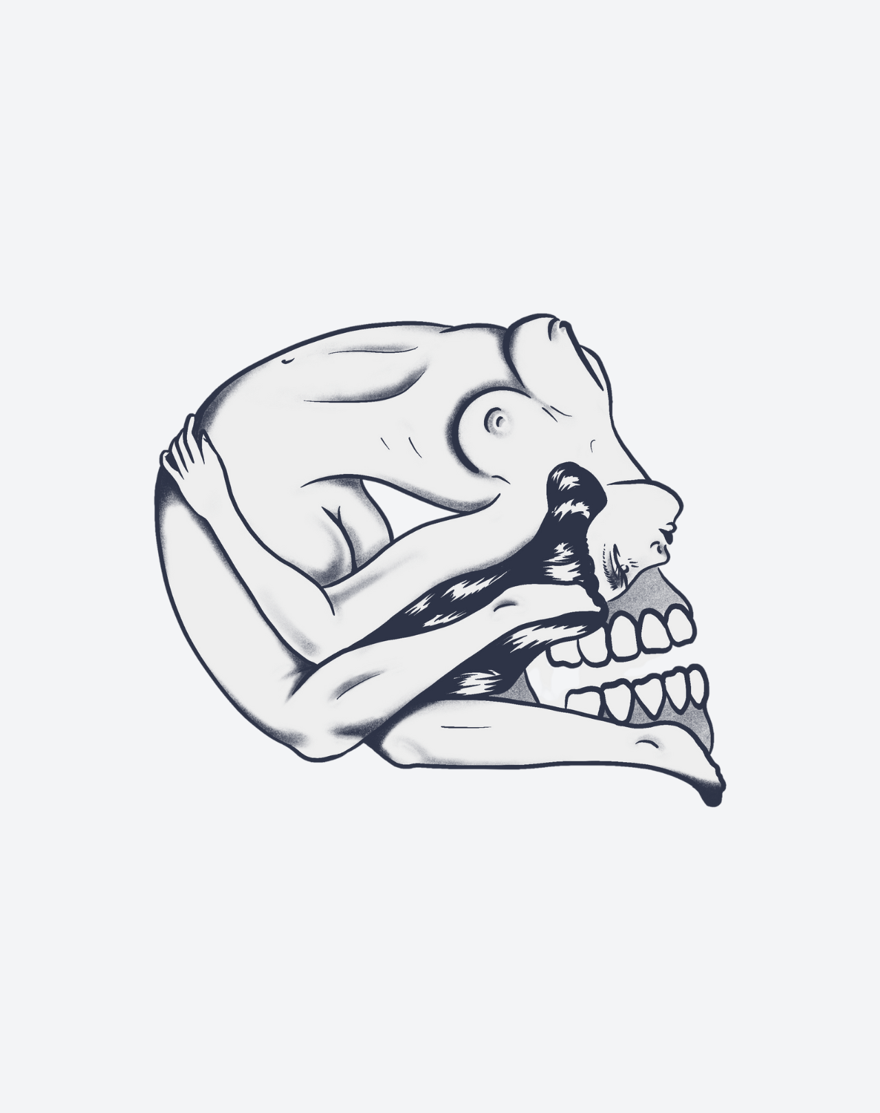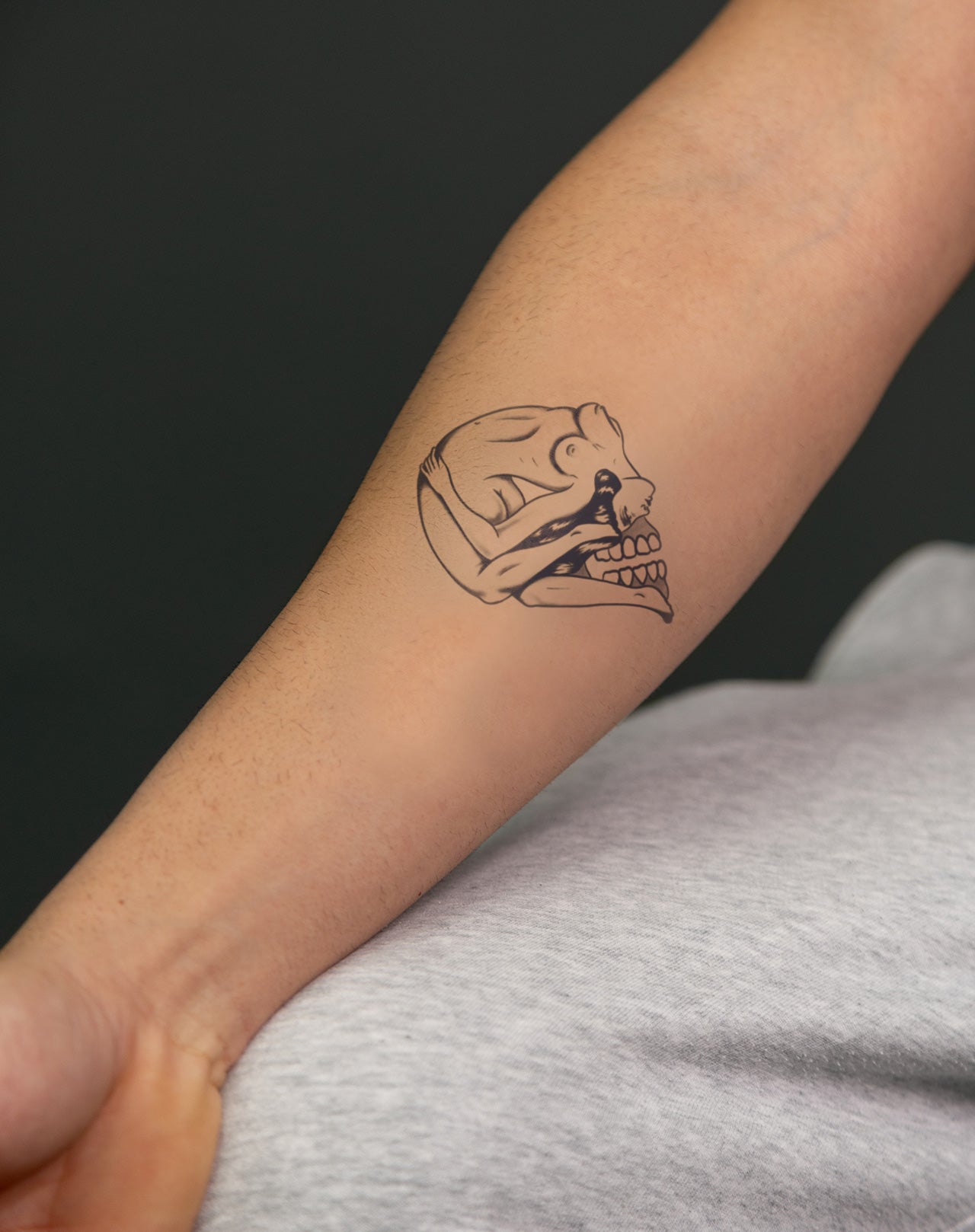 Bentback Girl is a 4x4 inch design by @aaronfhc that twists the boundaries of form, intimacy, and mortality. A contorted nude figure folds unnaturally, her body arched backward into the haunting contour of a skull. This surreal fusion of flesh and bone conjures a visceral tension—both sensual and skeletal, dreamlike and disquieting. A bold emblem for those who live in dualities, embracing vulnerability, transformation, and the poetic blur between beauty and decay. Delivered as a 1–2 week EZINK temporary tattoo.