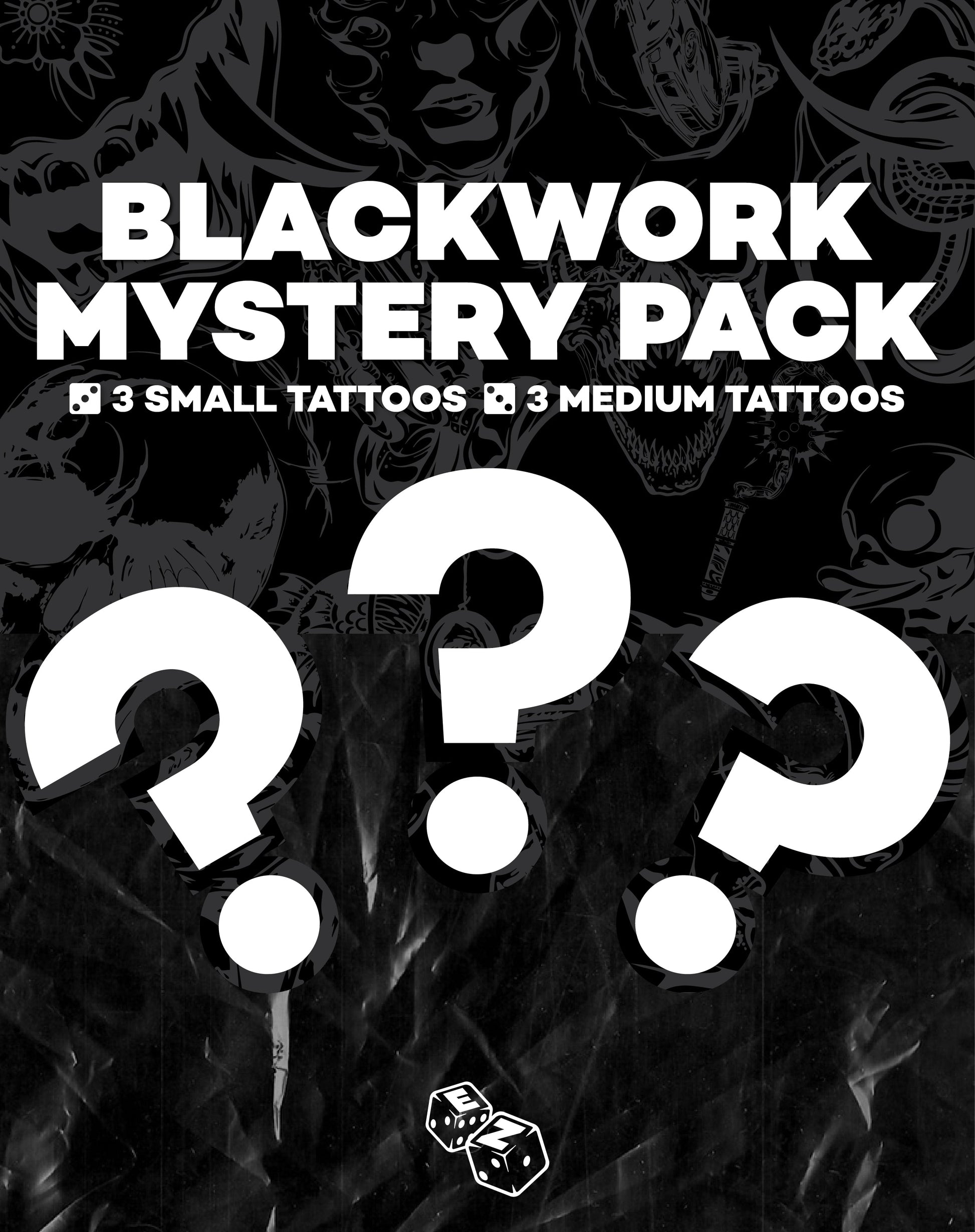 Want to try some of our best Blackwork tattoo designs at complete random? Well at an insanely cheap price, our Blackwork Mystery Pack offers 6 tattoos at less than R100 each. Following no specific pattern, 3x medium and 3x small tattoos will be chosen for you at complete random.
