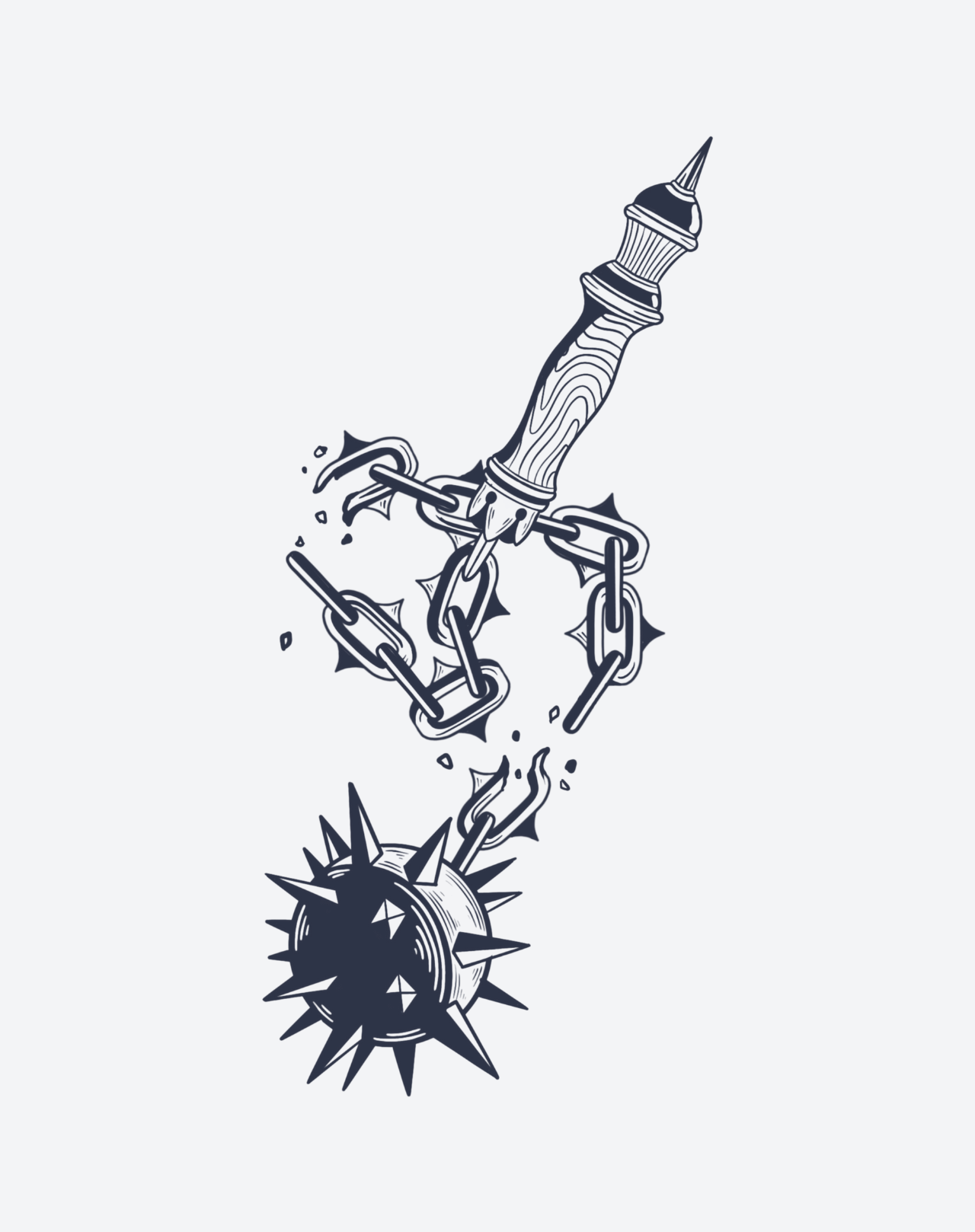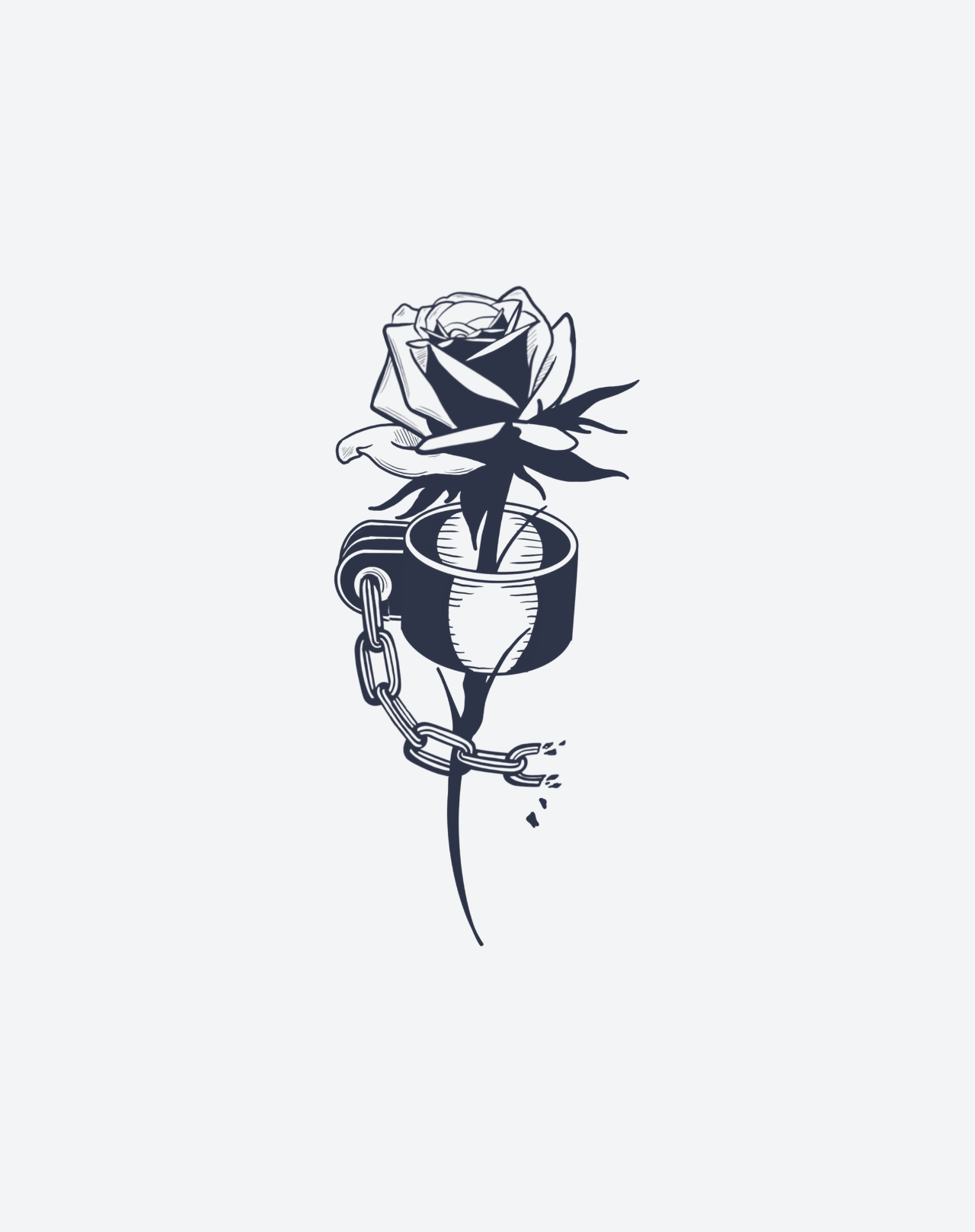 The Broken Bonds EZINK temporary tattoo pack, featuring three designs created by @yur.da.sells.blackwork, includes a shattered flail, a rose wrapped in chains, and two cuffed hands locked in a handshake. Each design explores themes of struggle, strength, and fractured connection. This pack lasts 1-2 weeks, perfect for those who find beauty in resilience and rebellion.