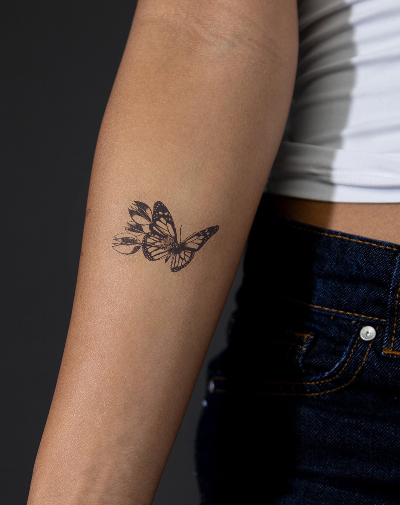 Transform your look with the Butterfly Darts temporary tattoo from 967tattoo! This 2x2 inch EZINK tattoo features a stunning butterfly design with three darts stuck to its back. With easy application and a lasting of 1-2 weeks, this tattoo is the perfect accessory for any occasion.