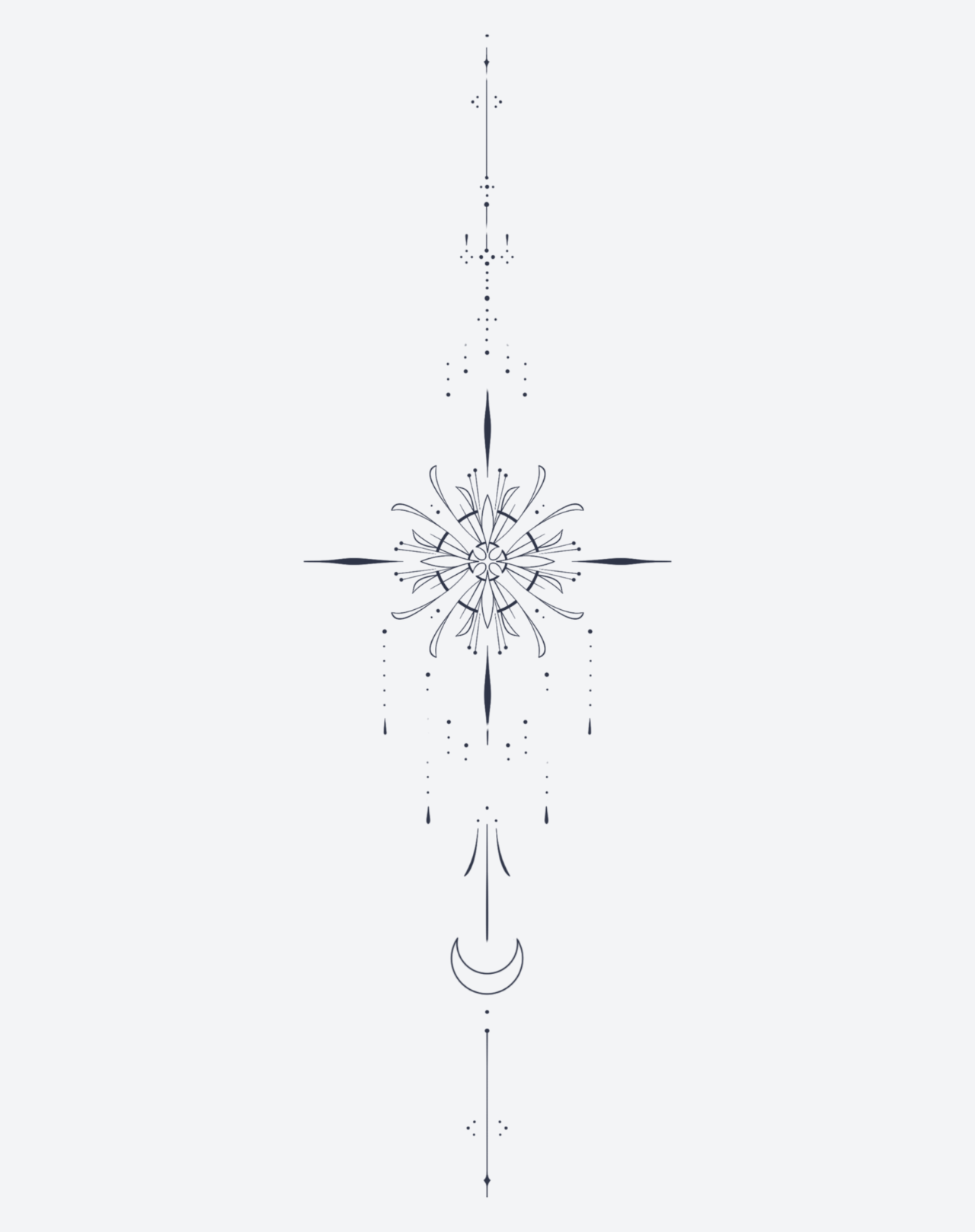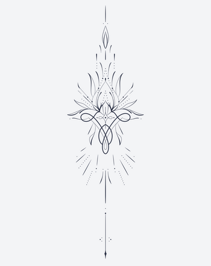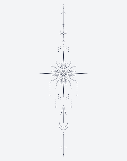 The Eternal Harmony EZINK temporary tattoo pack, featuring three designs created by @misskalitatattoos, includes three 5.5x9 inch delicate sternum tattoos. Each design showcases fine line precision and geometric balance, radiating a quiet, spiritual energy. This pack lasts 1-2 weeks, perfect for those seeking elegance, alignment, and a sense of inner peace through body art.