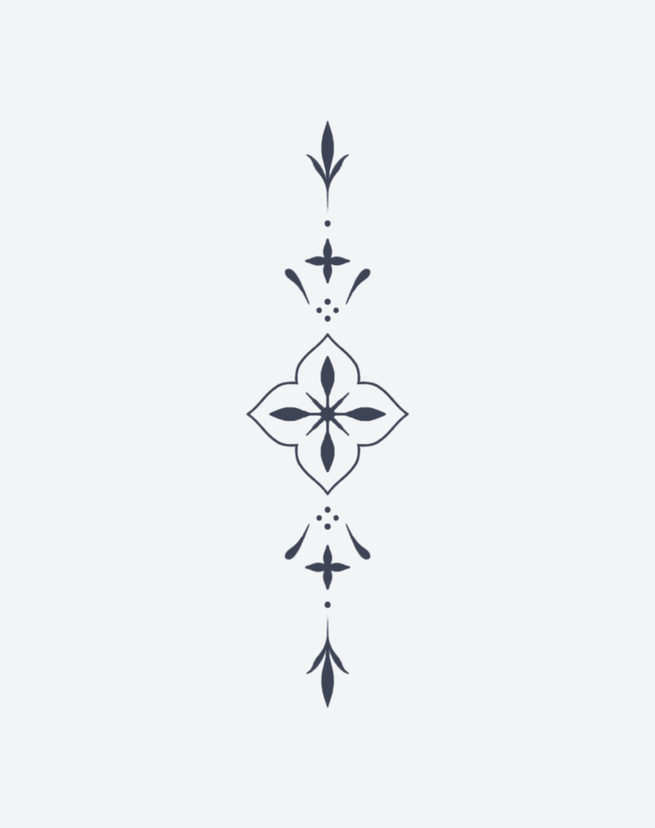 Expanding Flower is a 3x6 inch design by @Leenlytat that radiates symmetry and sacred balance. The central floral emblem unfurls into layered motifs above and below, creating a vertical flow that feels both ornamental and meditative. Ideal for wearers drawn to rhythm, structure, and spiritual elegance. Delivered as a 1–2 week EZINK temporary tattoo.