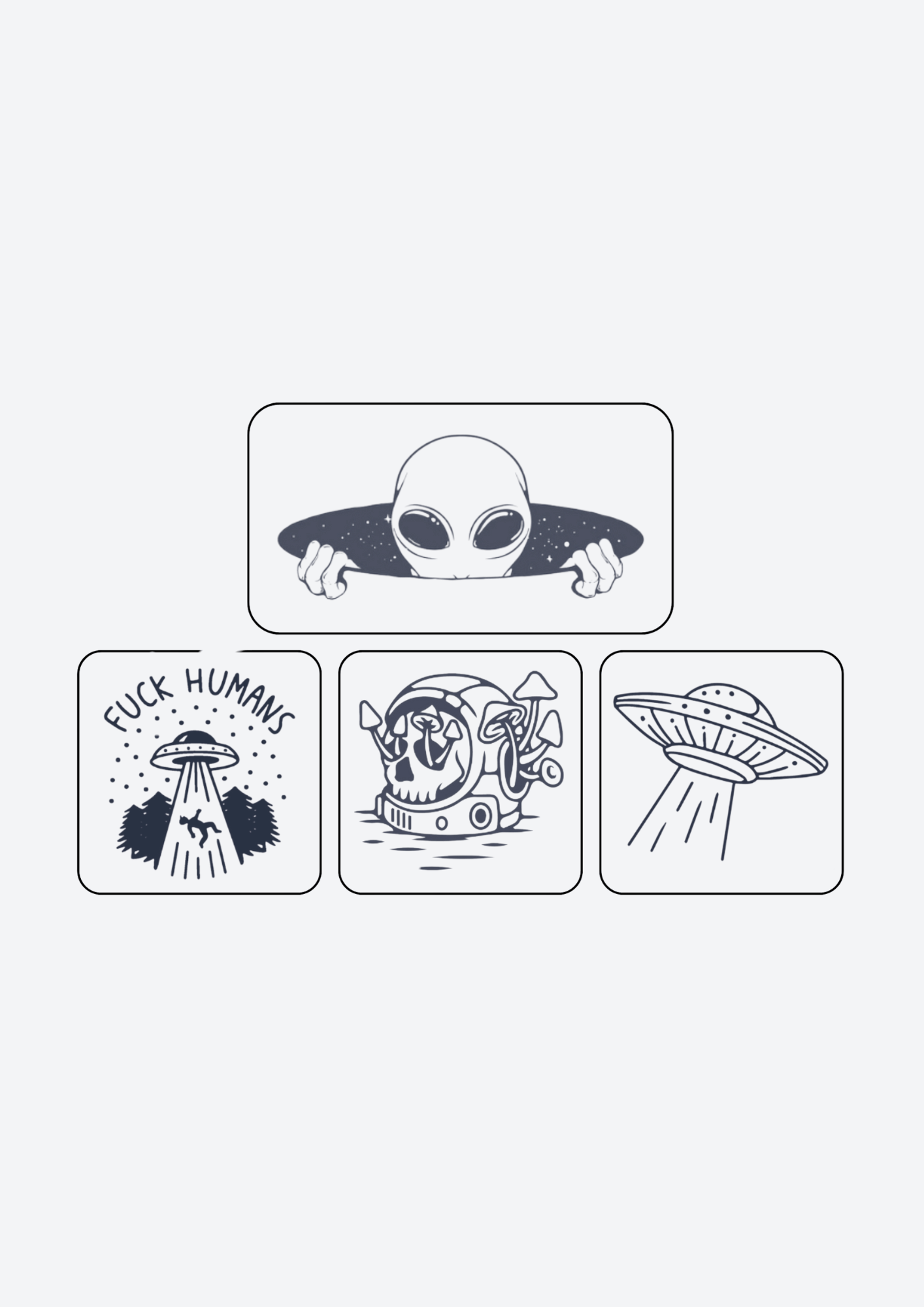 Unleash your inner space explorer with our Extraterrestrial Pack! This EZINK temporary tattoo pack features out-of-this-world designs, perfect for adding a touch of otherworldly charm to your look. Show off your love for all things extraterrestrial with these unique and eye-catching tattoos.