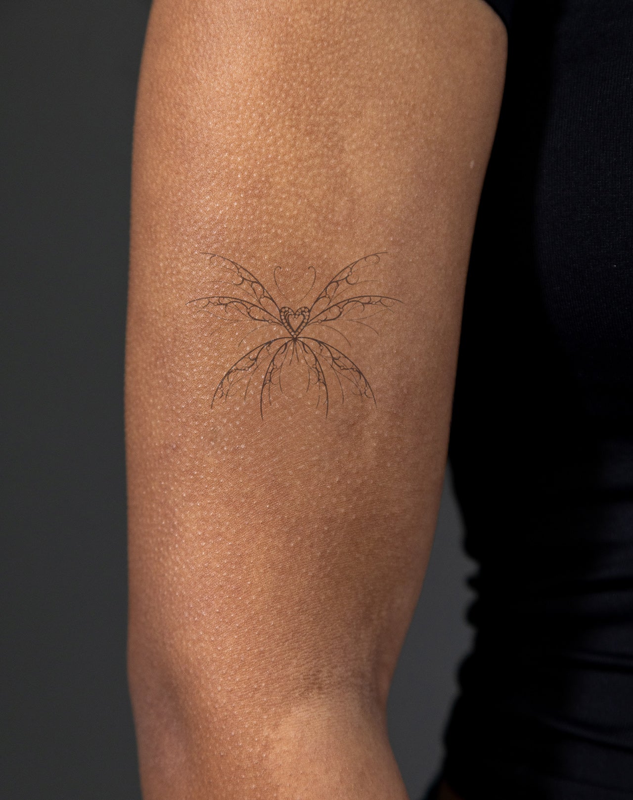 Heart Takes Flight is a 4x4 inch design by @lorrainy.tatts that transforms delicate linework into a vision of love in motion. A radiant heart sits at the center, unfurling into wings of intricate filigree that arc outward with elegance and grace. The symmetry suggests both balance and expansion, while the ornate flourishes echo vintage romance with a touch of mysticism. This 1–2 week EZINK temporary tattoo carries the spirit of liberation—love as a force that uplifts, protects, and soars beyond boundaries.