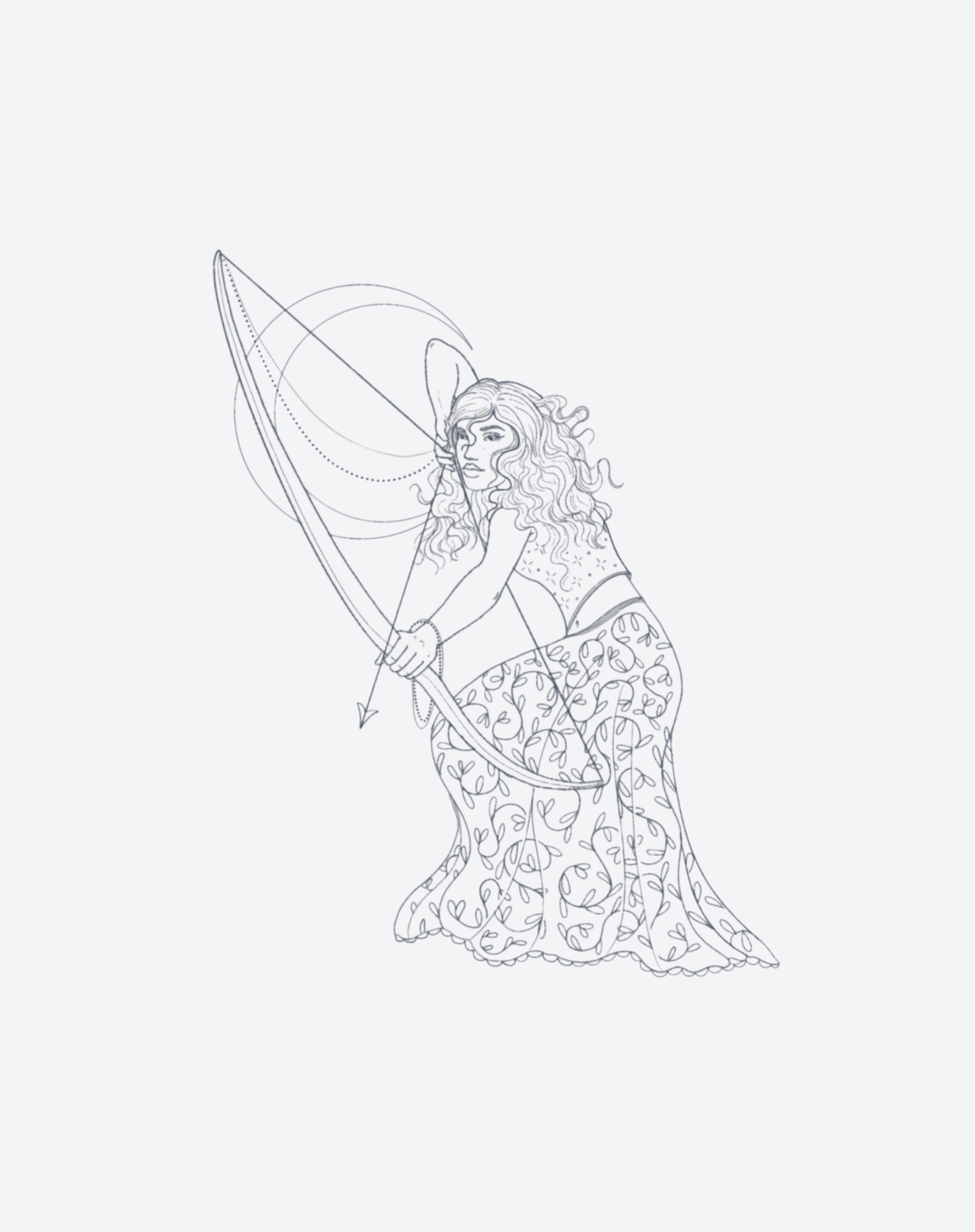 Huntress is a 4x4 inch design by @lish.tattoos that channels focus, intuition, and the power of pursuit. A poised archer kneels in balance, her bow drawn beneath the curve of celestial rings that trace her aim. The intricate floral detailing of her skirt softens the strength of her stance, blending grace with precision. Long a symbol of self-trust and purpose, the huntress embodies the courage to seek what calls from within. This 1–2 week EZINK temporary tattoo aligns beautifully with placements on the shoulder, thigh, or side rib—serving as a quiet reminder that clarity comes through stillness before release.