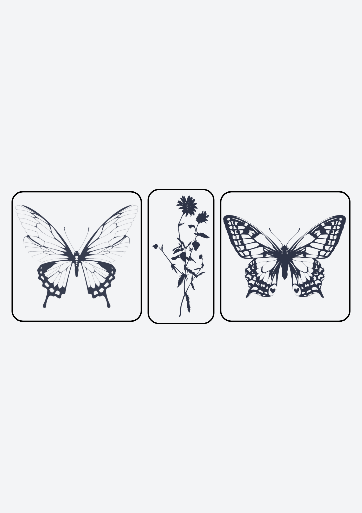 The Midnight Garden EZINK temporary tattoo pack, featuring three designs created by @loz_tattooer, includes two butterfly designs and one floral piece. This pack lasts 1-2 weeks, perfect for adding a touch of elegance and nature to your style