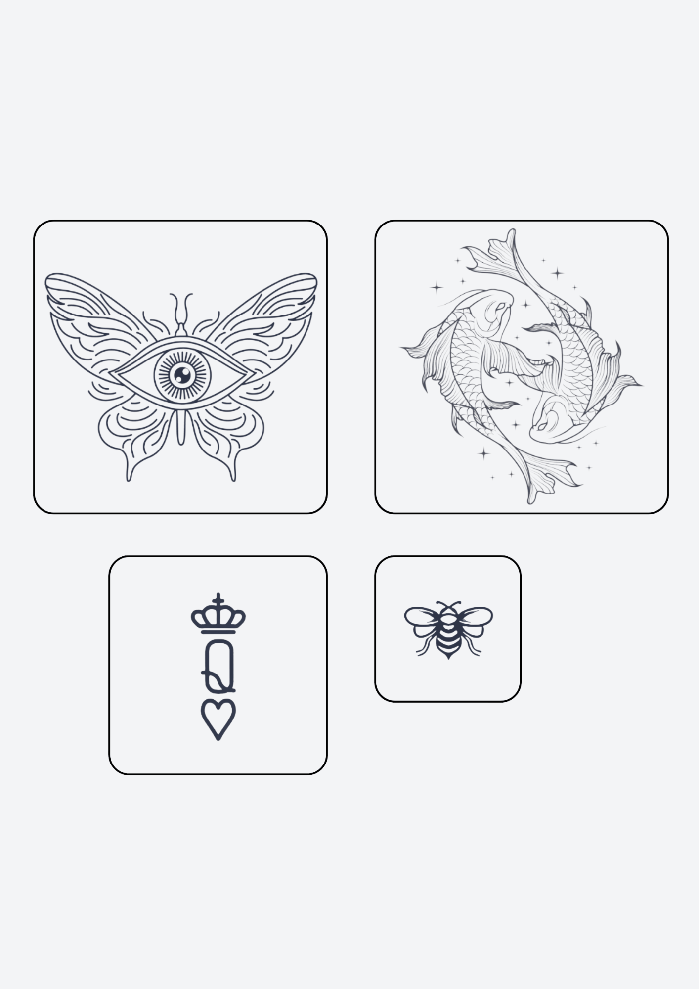 Fall in love with the effortless style of the Minimal Girl Pack! This luxurious set includes 4 EZINK temporary tattoos of varying sizes, ranging from 1x1 to 4x4 inches. Get creative with these cute, girly designs - perfect for expressing your unique style in a subtle way!