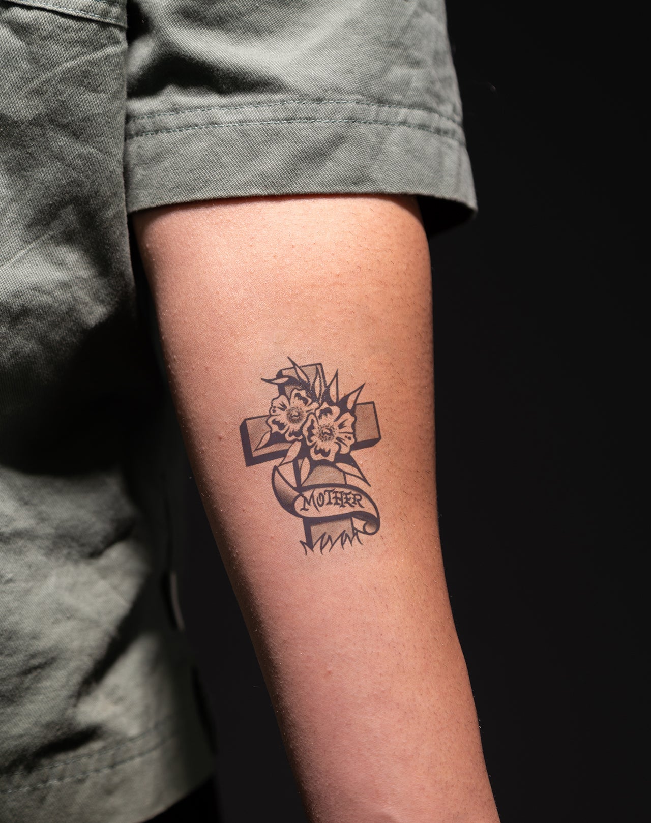 Mother is a 2x3 inch design by @aaronfhc that honors timeless love and remembrance. Featuring a bold cross adorned with blooming flowers and a flowing banner that reads “Mother,” this classic composition echoes vintage tattoo sentiment with depth and reverence. A powerful emblem of devotion, legacy, and loss, it speaks to anyone holding maternal memory close to the heart. Delivered as a 1–2 week EZINK temporary tattoo.