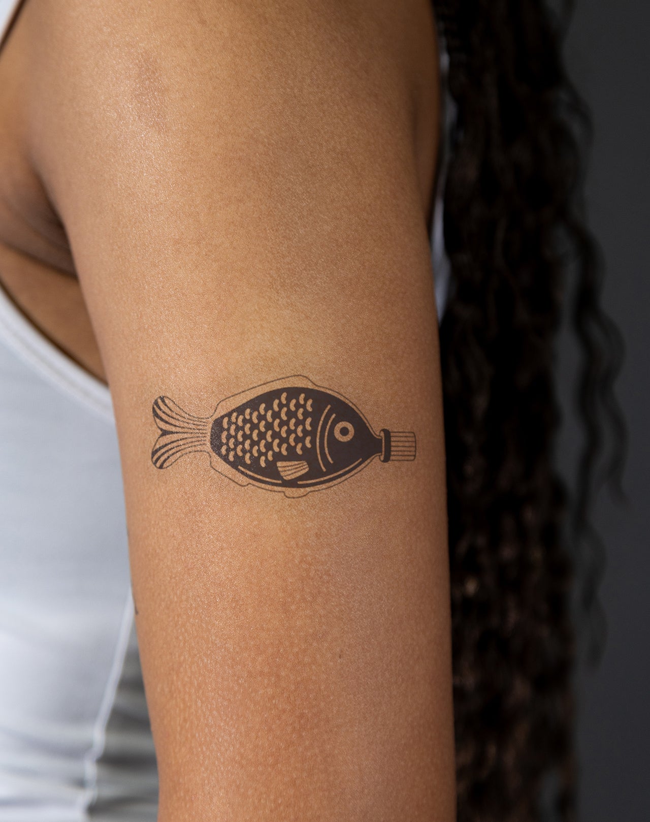 Soy Sauce is a 2x3 inch design by @Leenlytat inspired by the playful, instantly recognizable shape of the classic soy sauce fish packet. Rendered in bold blackwork with minimalist detail, this design celebrates everyday objects with cultural resonance and quirky charm. Ideal for food lovers, nostalgia seekers, and those who appreciate the beauty in the mundane. Delivered as a 1–2 week EZINK temporary tattoo.