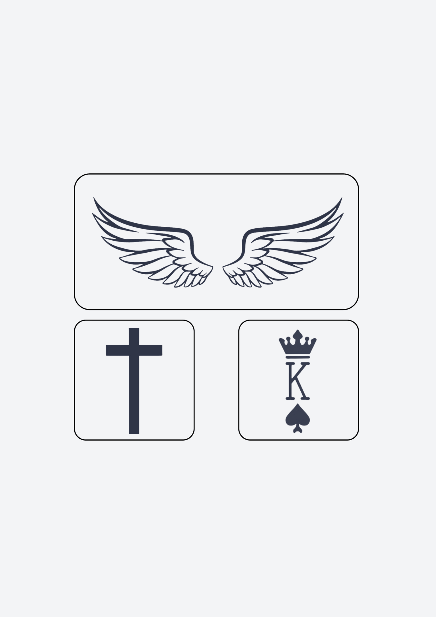Unleash the royal in you with The King Pack! Featuring 3 unique themed designs, this EZINK temporary tattoo pack will leave a lasting impression. From religious themes to powerful symbols, express yourself and inspire others with this pack. Make a statement that's fit for a king!