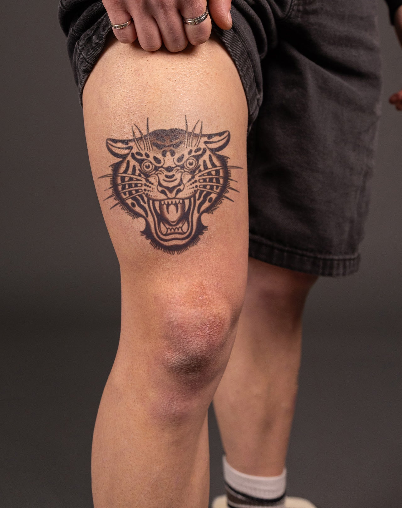Unleash your wild side with Vicious Tiger! This semi-permanent, 6.5x6.5 blackwork tiger tattoo design created by Wes will make you stand out from the crowd. Show off your passion and strength with this powerful and unique piece.