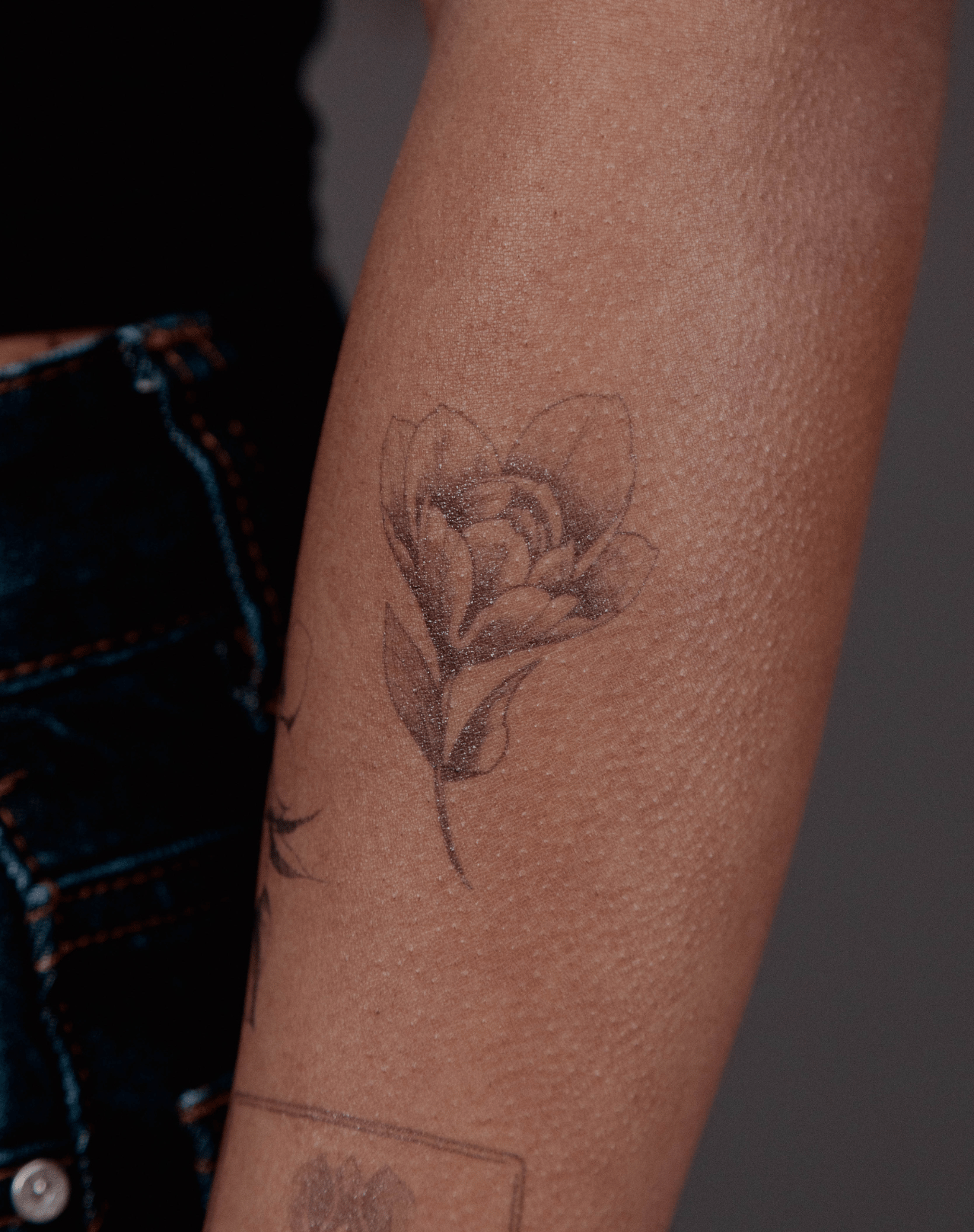 Windbend is a 2x3 inch design by @shelltatts that captures a moment of gentle motion. A delicately shaded flower leans with subtle grace, as if swayed by a breeze. The minimalist structure and flowing lines make this a symbol of quiet strength and resilience. Delivered as a 1–2 week EZINK temporary tattoo.